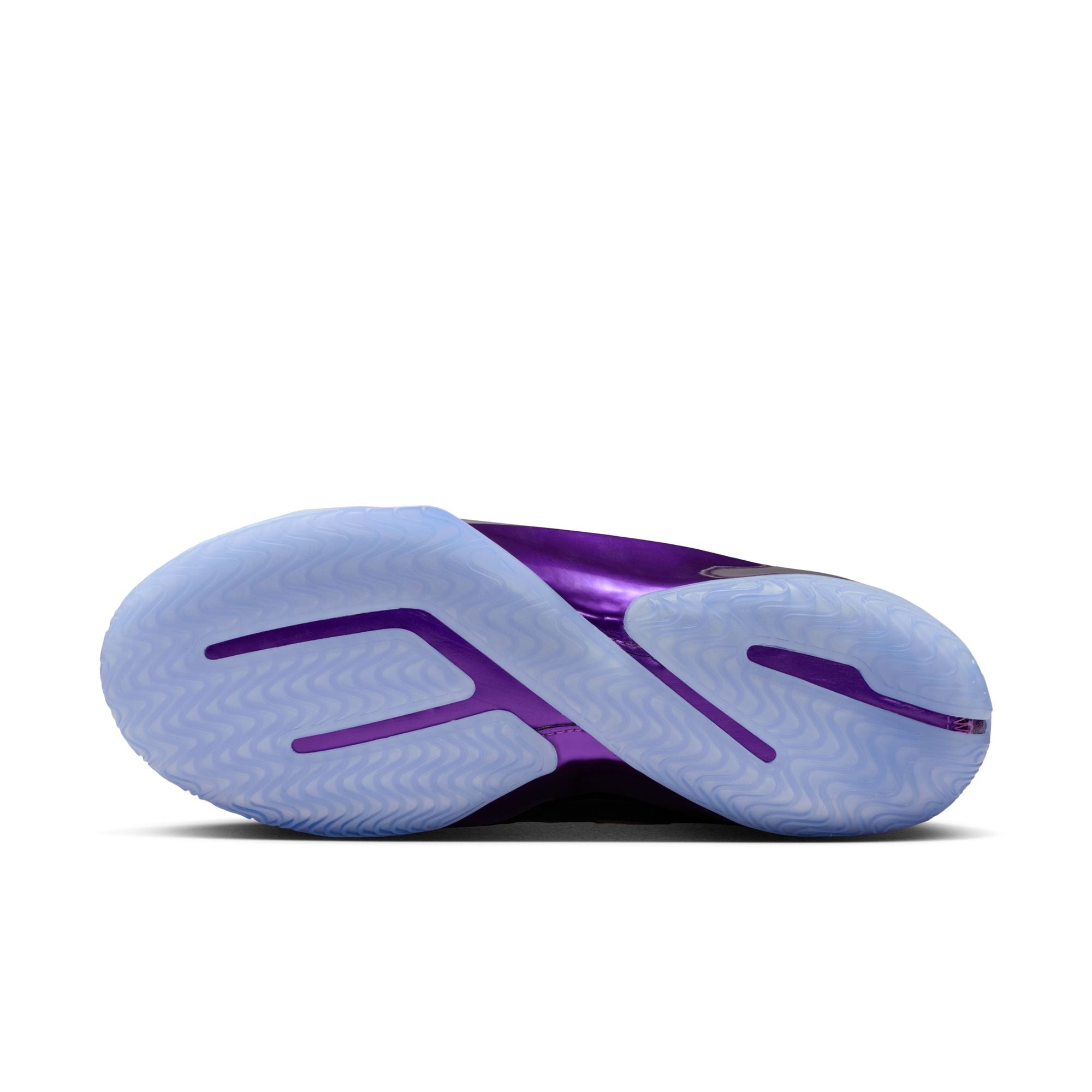 • The right shoe is all about LeBron, complete with his signature gold, as well as his “Chosen 1” icon on the heel, a nod to his storied career. The black-and-purple left shoe honors Bronny with his own "1 Who Chose" heel decal, symbolizing his individual path in the game. The upper pattern on both shoes is a mix of large crowns (saluting LeBron’s long-standing reign) and small crowns (signifying Bronny’s promise).